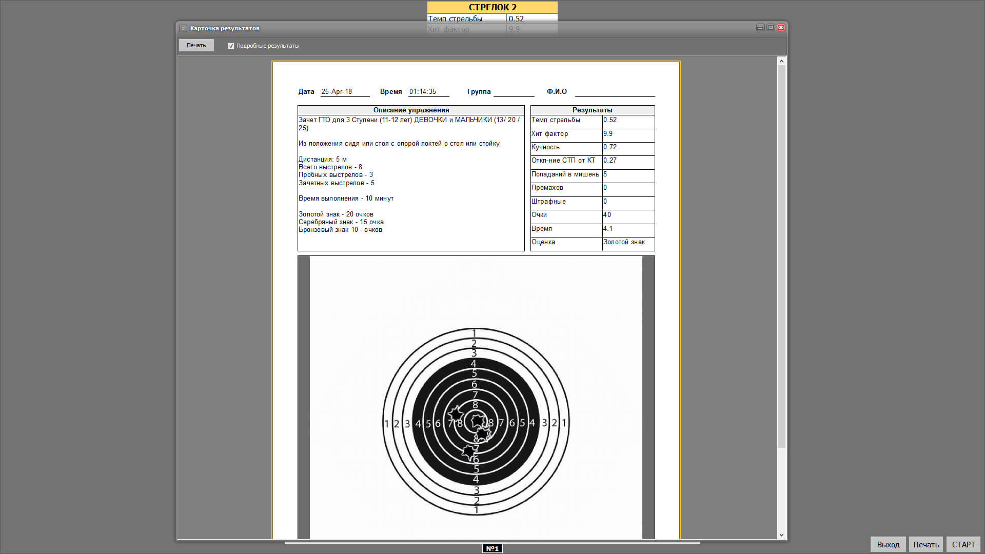 Программное обеспечение для сдачи нормативов по стрельбе